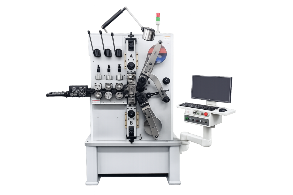 Built with a reinforced mechanical structure and servo-controlled forming system, the machine provides precise control of wire feeding, coil diameter, pitch adjustment, and cutting operations. This dedicated compression spring configuration ensures consistent spring geometry and reliable repeatability during continuous production.