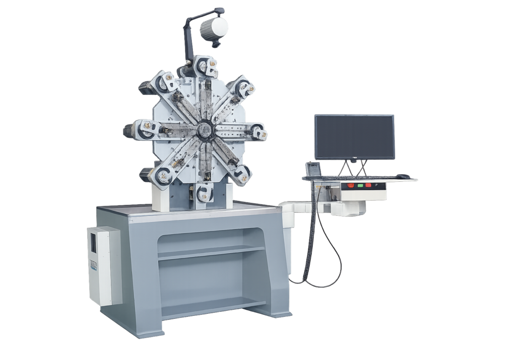 The machine is capable of producing compression springs, torsion springs, extension springs, and customized wire forming parts, and is widely applied in electronics, precision hardware, medical devices, and small mechanical components.